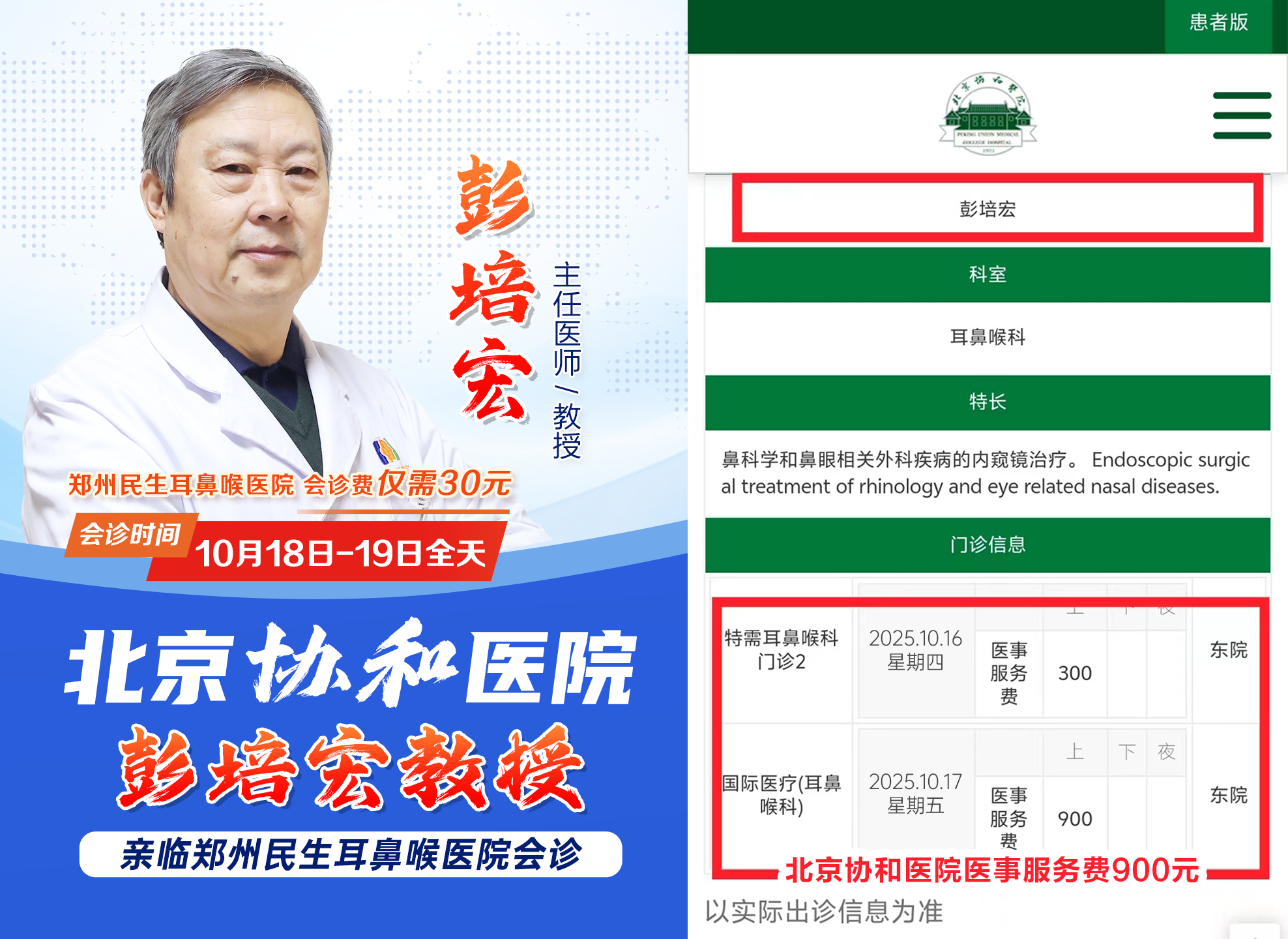 家门口看协和名医!彭培宏教授10月18-19日郑州亲诊,预约从速!