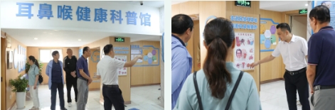 老科协一行实地查看了医院门诊大厅、党建文化阵地、耳鼻喉健康科普馆。在禹爽院长的介绍下,大家边走边听边看,了解了医院的基础设施建设、医疗技术水平等方面情况。