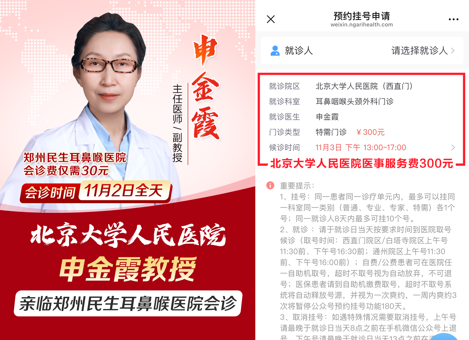 为了让郑州及周边地区的居民无需长途跋涉,即可在家门口享受到北京专家的顶级医疗服务,从而让患者好看病、看好病,郑州民生耳鼻喉医院特邀【北京大学人民医院】权威专家——申金霞教授,于11月2日(周六)亲临我院,开展为期一天的联合会诊及教学查房活动。