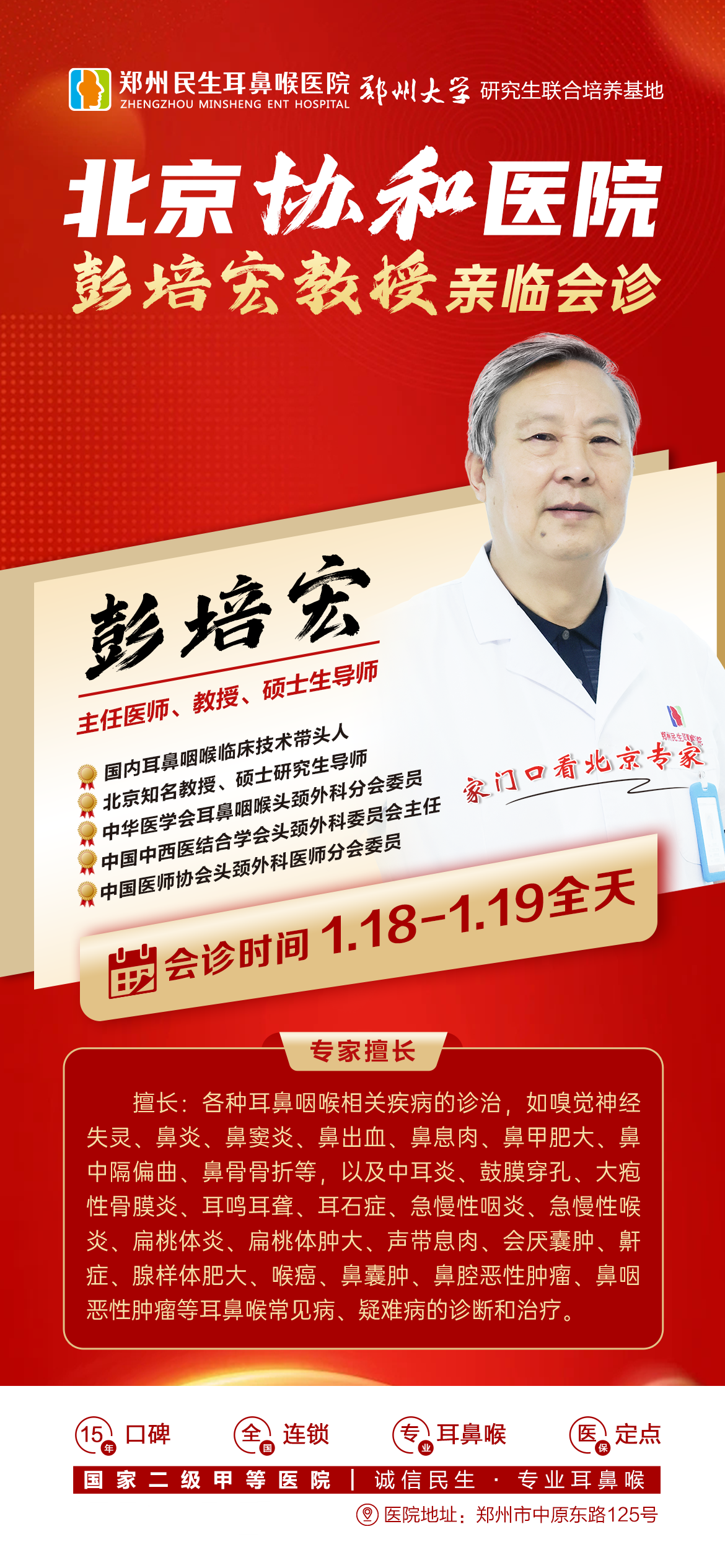 【寒假看北京专家】北京协和医院耳鼻喉专家彭培宏教授1月18-19日来院会诊,预约从速!
