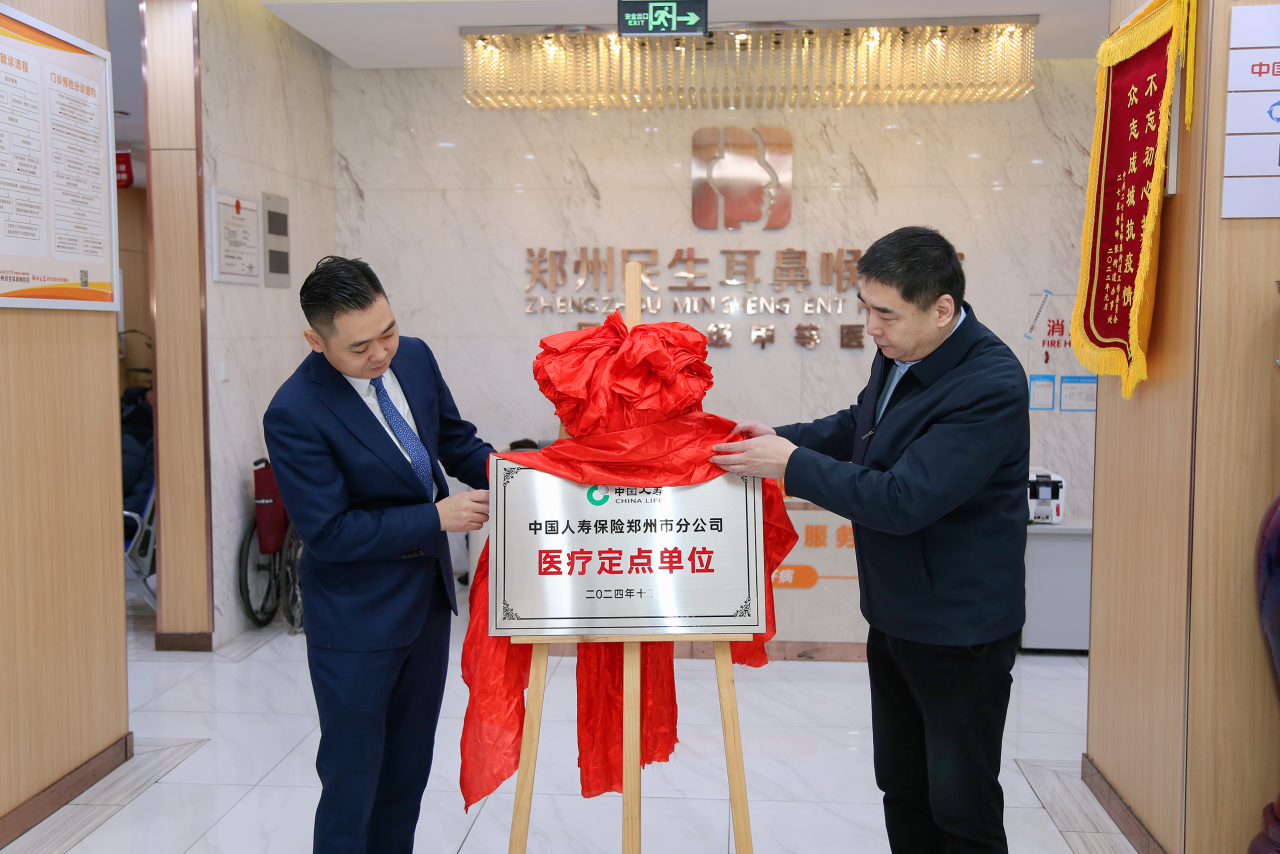 2025年1月23日,中国人寿保险郑州市分公司与郑州民生耳鼻喉医院成功举行医疗定点单位签约揭牌仪式,标志着双方在健康保障领域开启全新合作篇章。